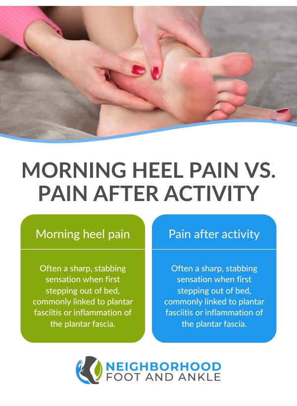 Dr. Devaraju explains, “The timing of heel pain is one of the most helpful clues we have. Whether pain appears first thing in the morning or after activity often points us toward the underlying cause.”