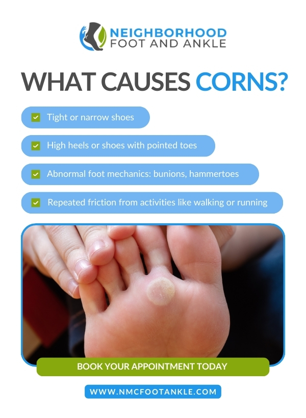 Corns may seem minor at first, but persistent pressure can lead to ongoing discomfort if the underlying cause is not addressed. Proper evaluation helps ensure that both the corn and the source of irritation are treated effectively.