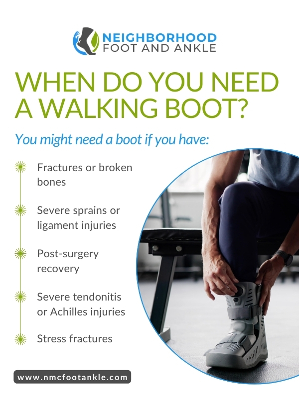 Conditions that may require a walking boot include: